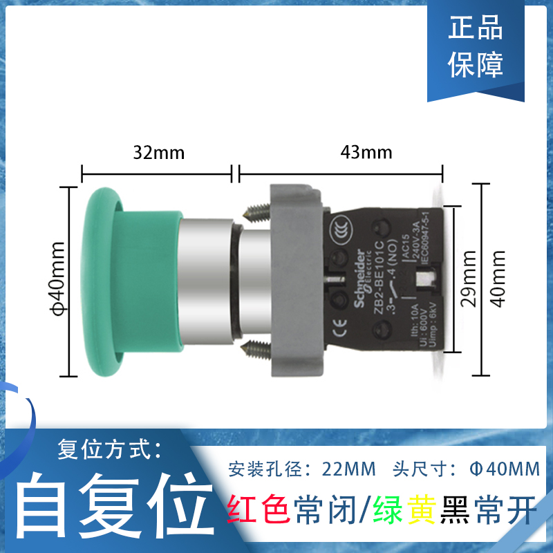 Schneider Green Mushroom Head Start Button XB2BC31C Self Reset Switch XB2BC42C Red Stop