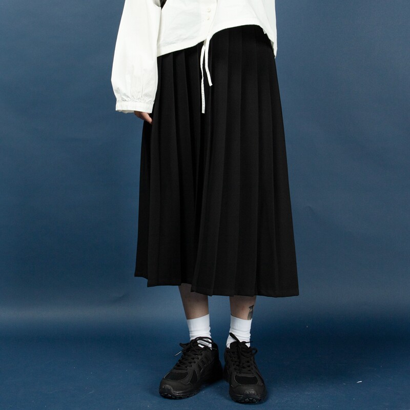 Branches and small buds 2020 new autumn and winter black long skirt jk long skirt Japanese high waist A-line skirt pleated skirt