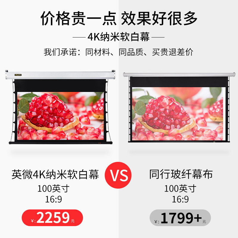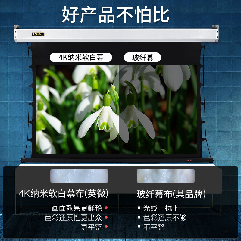 British Micro Projector Electric Screen Household Remote Control 100 inches 120 inch HD 4K 3D 3D Nano Soft White Glass Fiber Anti-Light Screen Wall Hanging Embedded Projection Screen Home Theater Background Wall