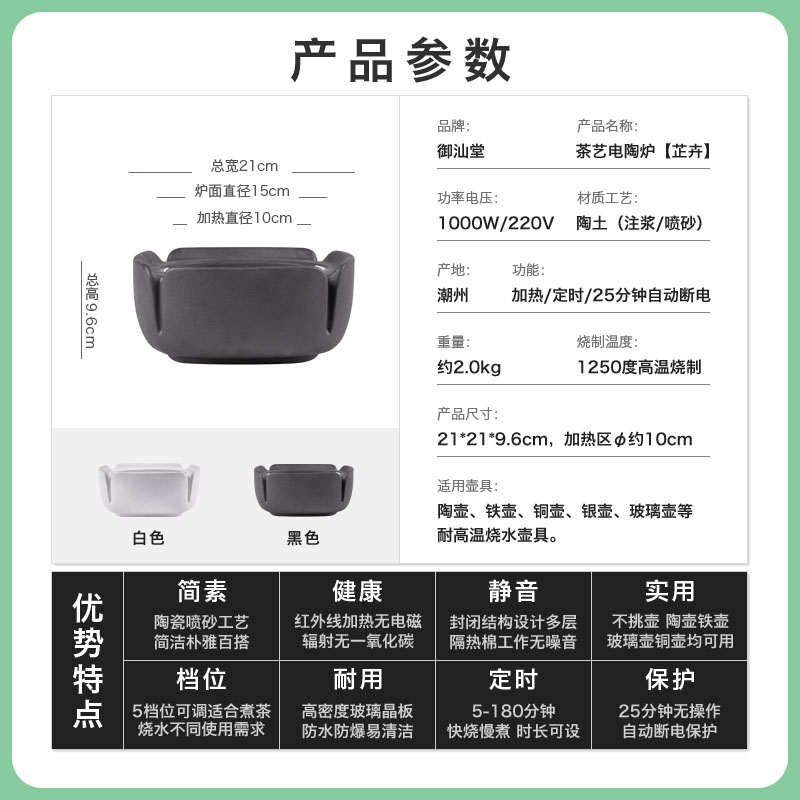 Day Style Ceramic Cooking Tea Stove Mute Black Crystal Stove Home Small Table Burning Water Cooking Tea Machine Mini Single Electric Hot Pottery Stove