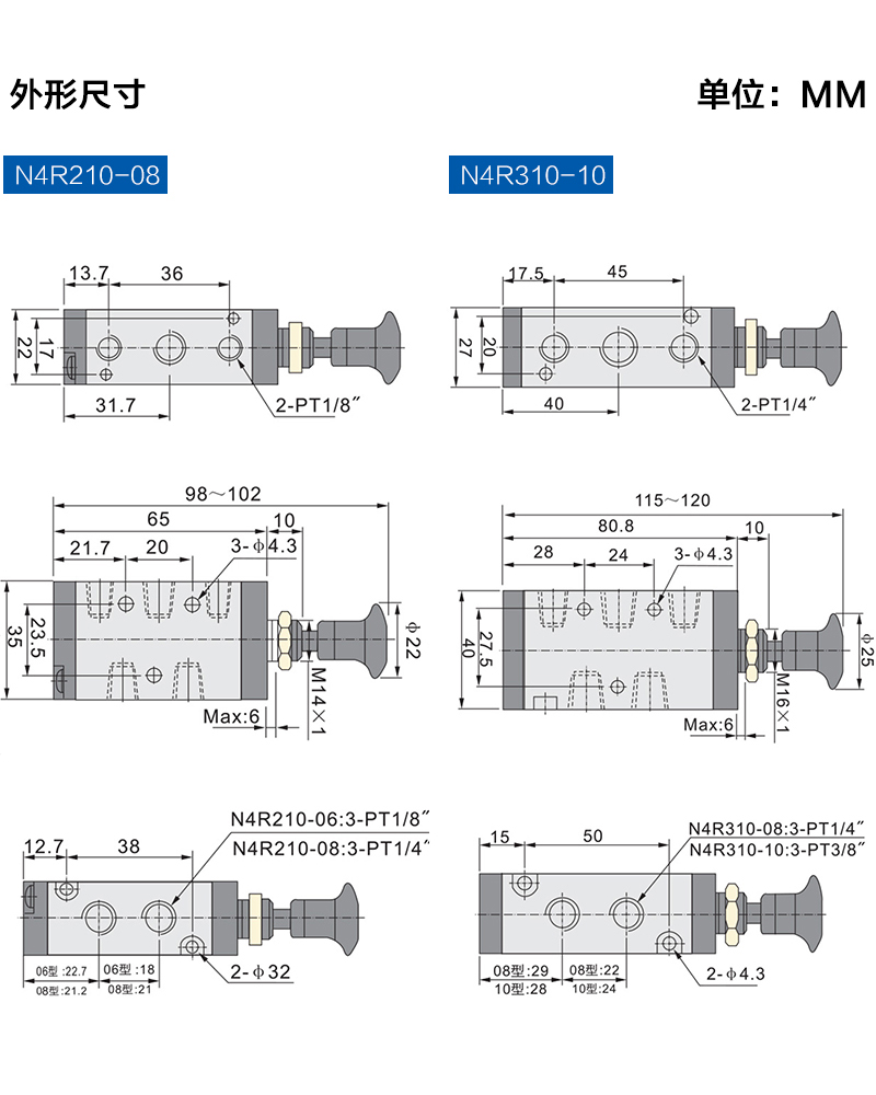 Zhengtai pneumatic manual hand-pull valve 4R210-08 two-position five-way cylinder control switch push-pull valve 4R310-10