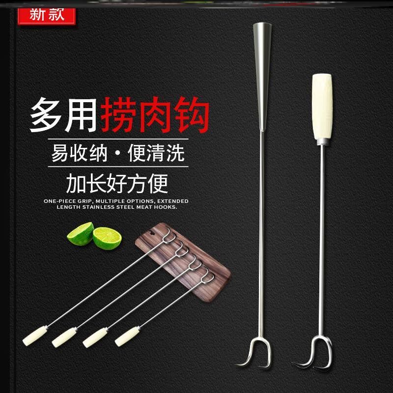 Long handle meat hook Iron hook Meat hook Special meat braised short wooden handle Beef and mutton fried meat handmade chef
