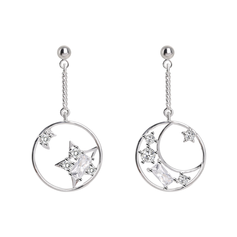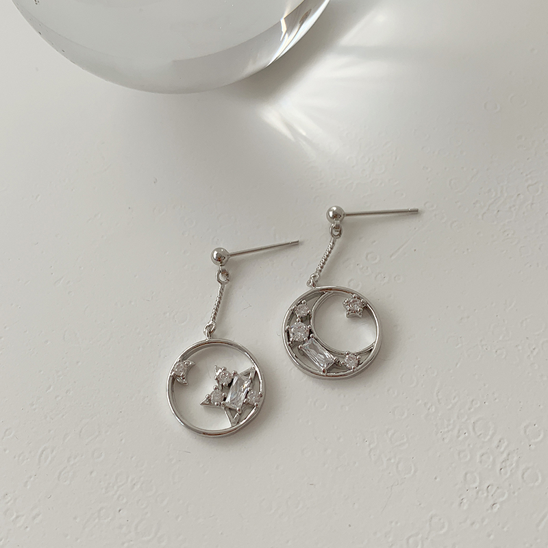 Net Red Personality Asymmetrical Moon Earnilles Female Superfairy Hearts Pentagram Earrings Ins brief Flow Sueardrops