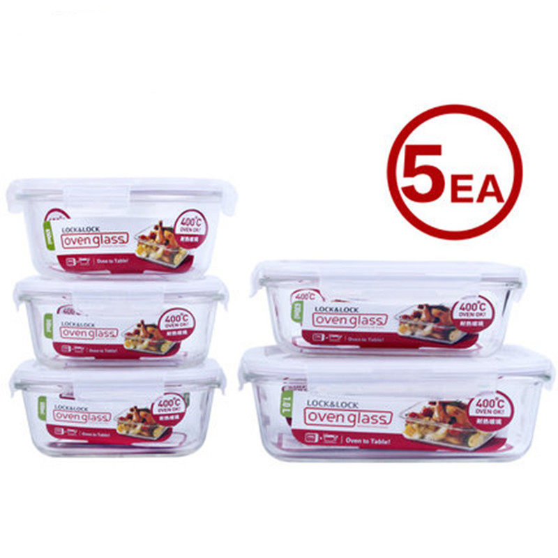 Music buckle music buckle heat-resistant glass refreshing box 5 pieces of gift box set LLG445S001 microwave lunch box