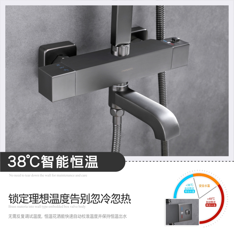 Cnssimpsons Gun Grey Thermostatic Shower Shower Home Suit Brass Hanging Wall Style Bath Booster Spray Head-Taobao