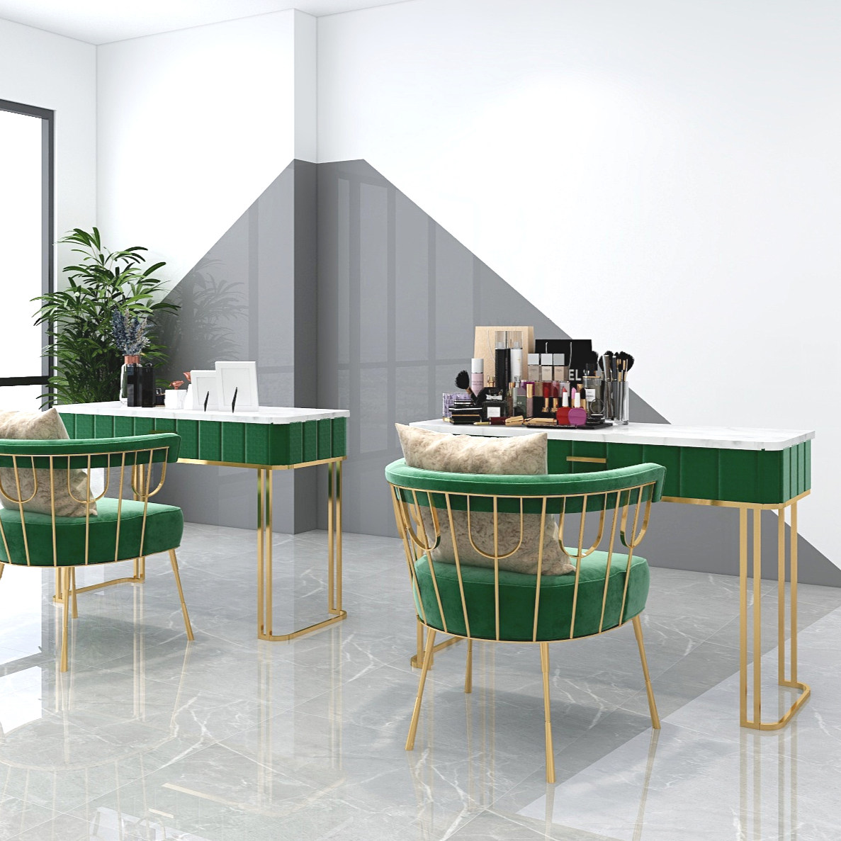 Nordic Network Red Store Marble Single Double Nail Table and Chair Set Combined Modern Simple Double Soft Bag Panel