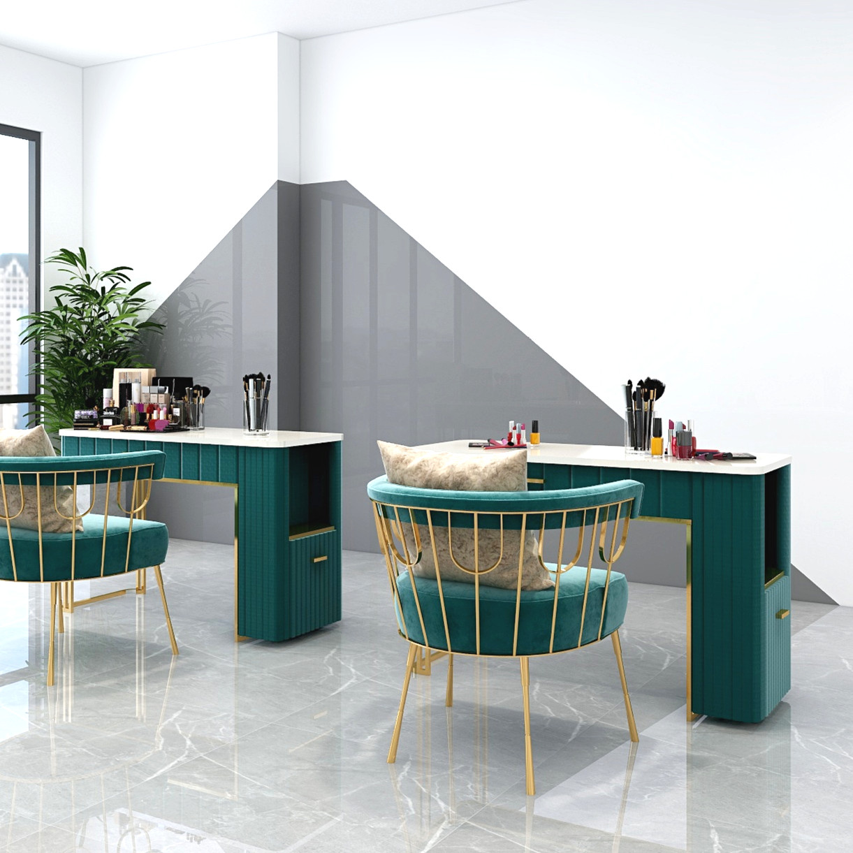 Nordic in Red Nail Desk and Chair Set Single Double Double Double Panzer Simple Modern Golden Nail Table