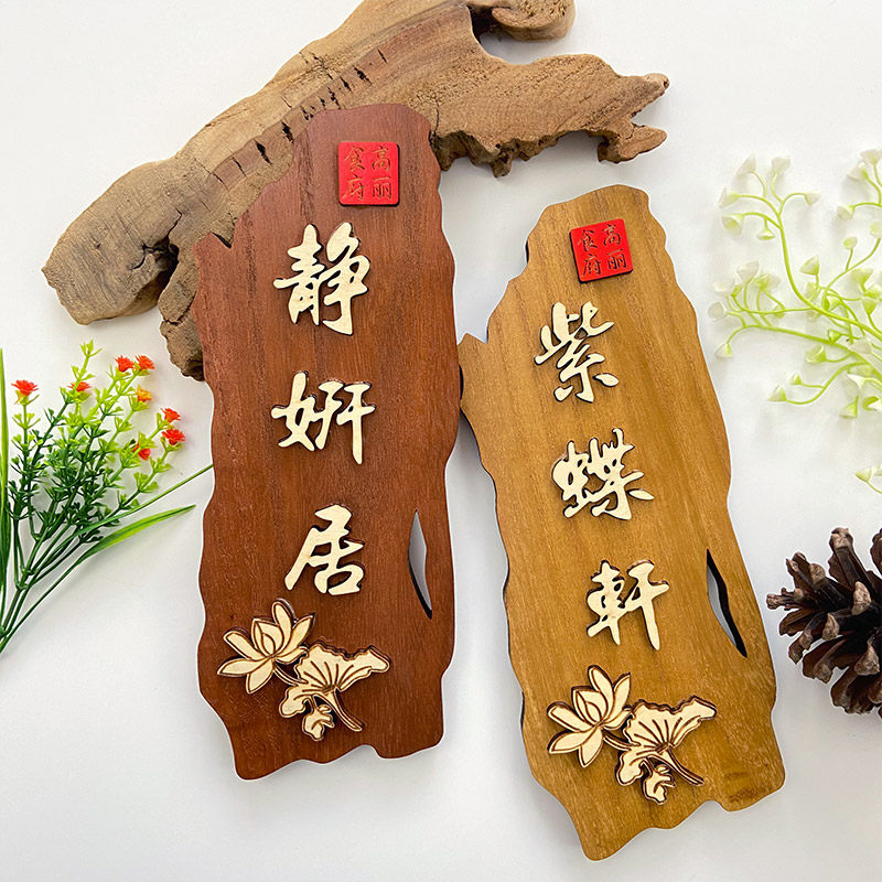 Chinese style retro solid wood door card custom-made upscale bag room hotel Hotel Hotel Creative Wooden carve wood listing