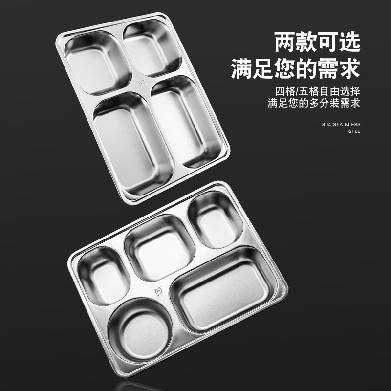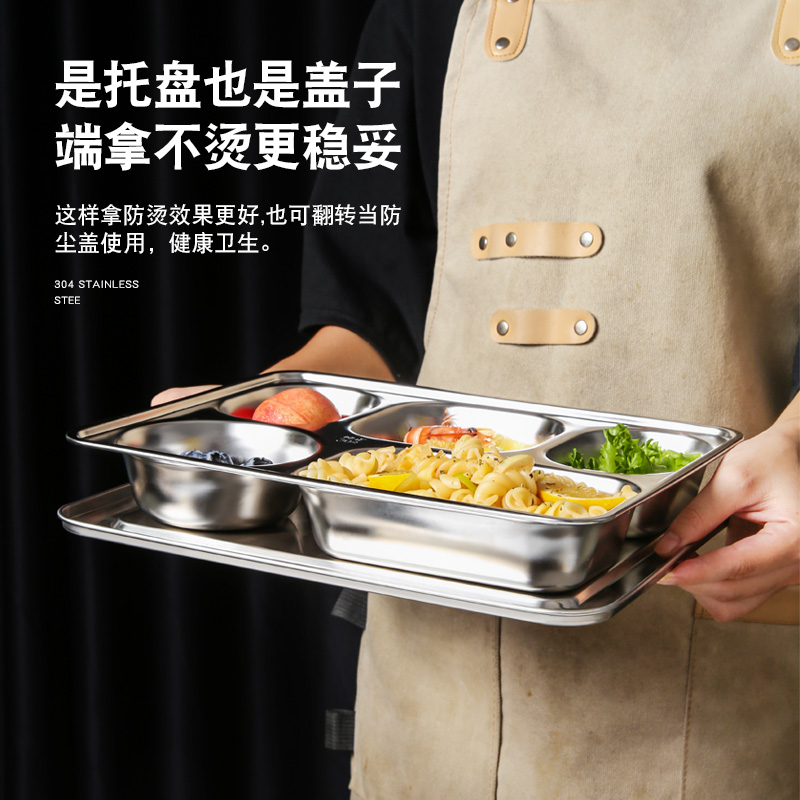 304 stainless steel dinner plate quad fast food tray Home adult children Divided Dinner Plate Canteen Students Separated Dinner Plates