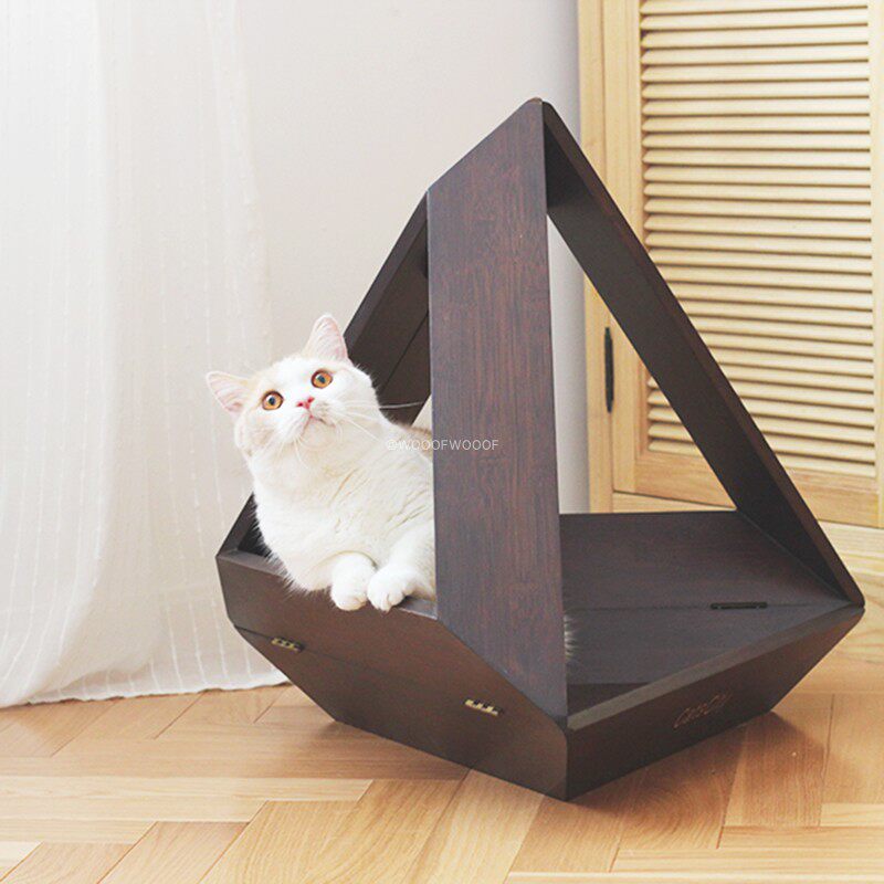 Triangle Space Cabin CatsCity Domestic Designer Brands Kitty Home Innate and Wood Cat Bed