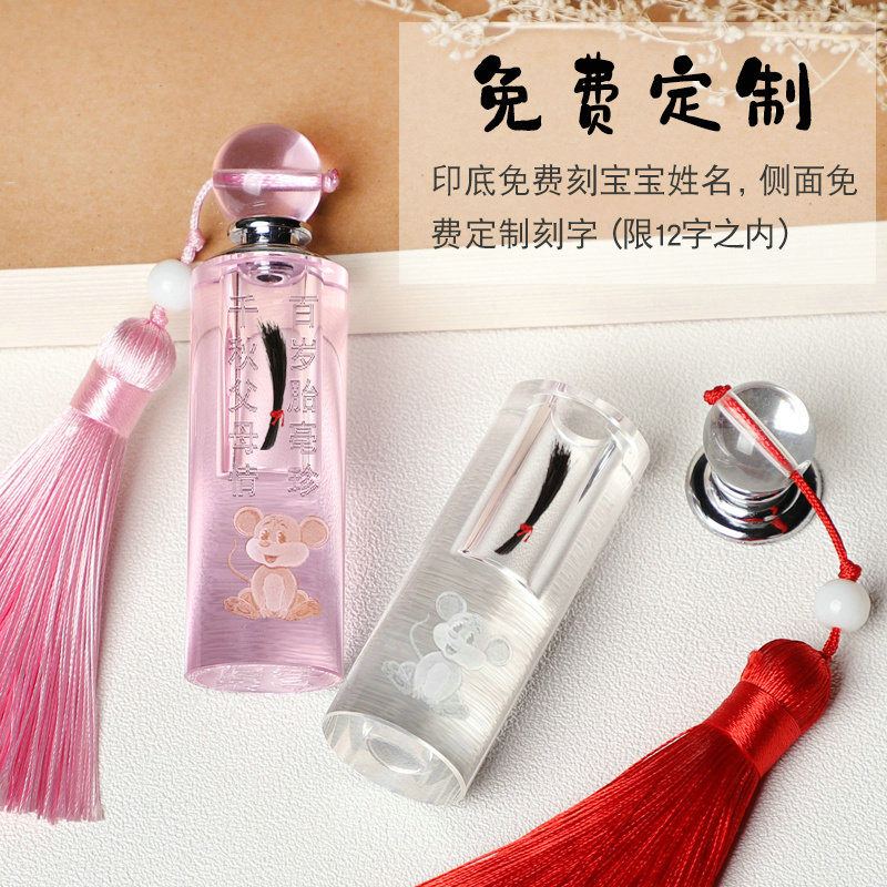 Crystal Stamp Fetal Hair Souvenir Rat Year Newborn Baby Umbilical Cord Fetal Hair Zhang Baby Glazed Hair Diy Self Made