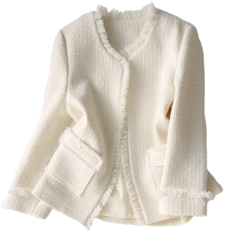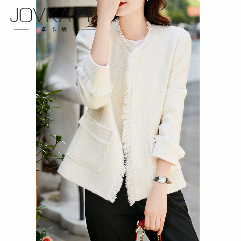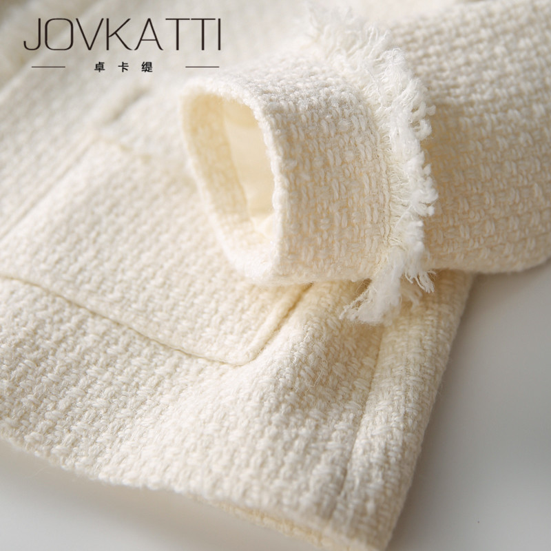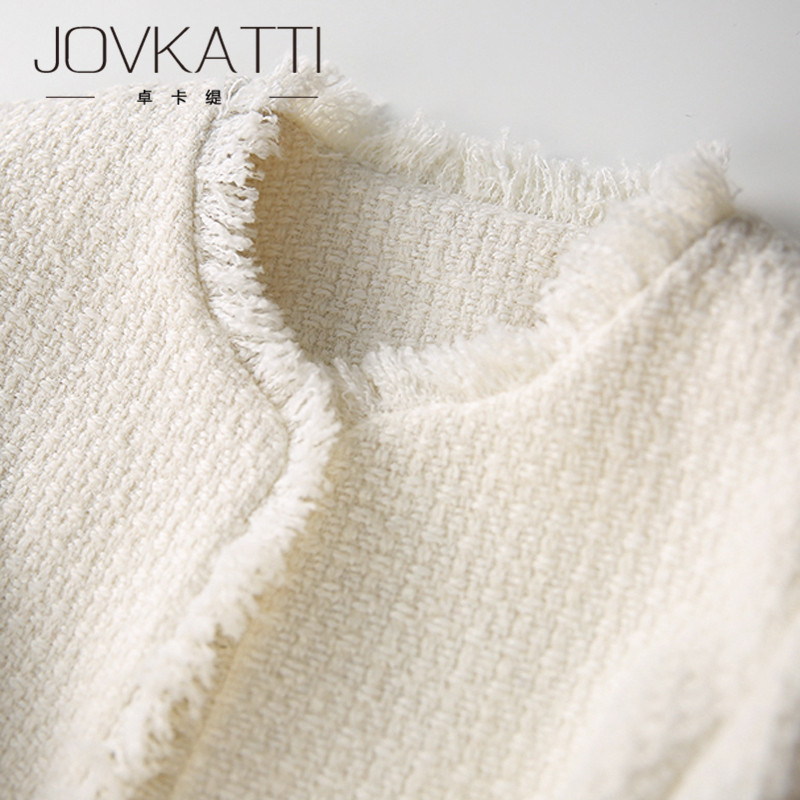 JOVKATTI light luxury celebrity style white wool tweed jacket women's 2022 early autumn new temperament tassel pocket