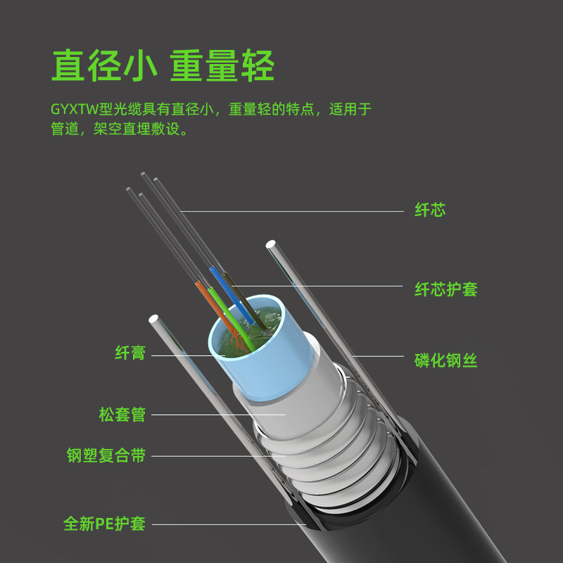 4-core outdoor optical cable GYXTW-4B1 four-core single-mode sheathed optical fiber wire central beam-pipe fiber optic cable 6-core 8-core 12 core 24 core monitor security wire