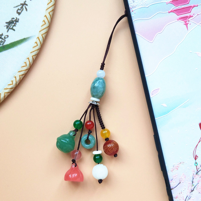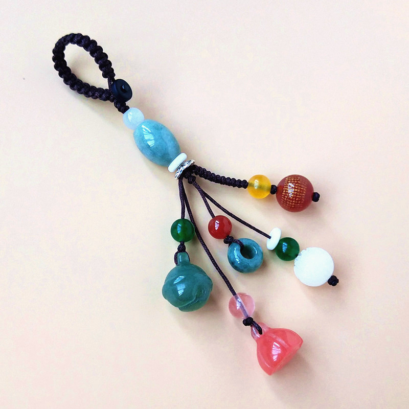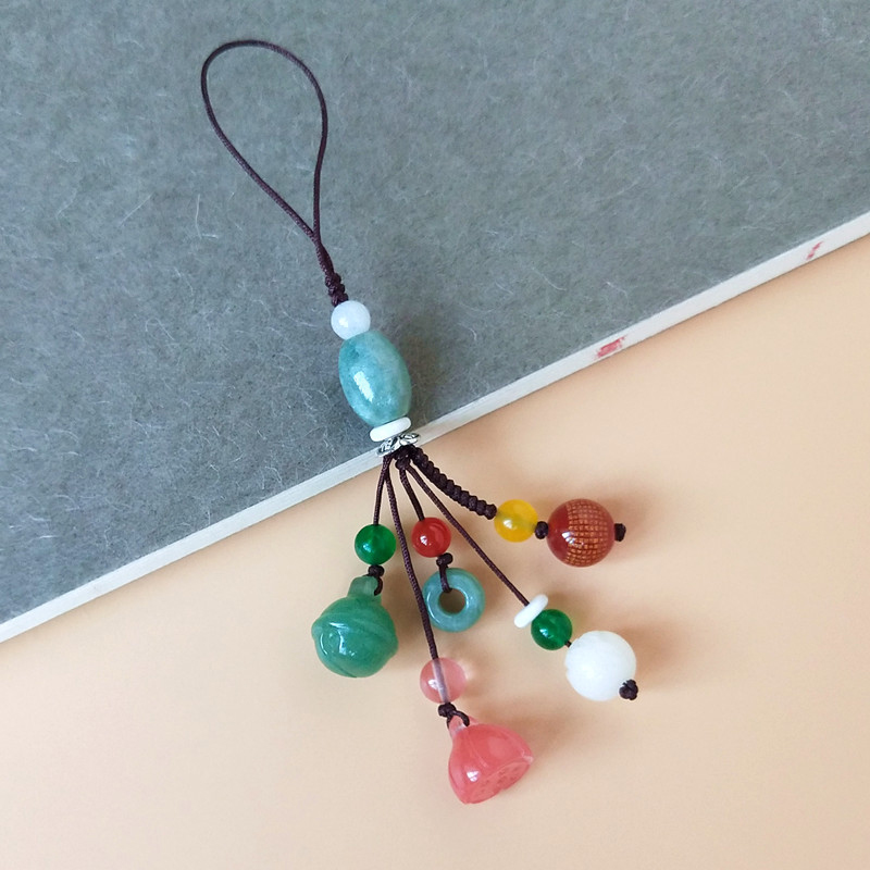 Emerald Road Pass Jade Multi-Treasure Pendant Lotus Lotus Lotus Car Key Pendant Key Pendant male and female hanging ornament