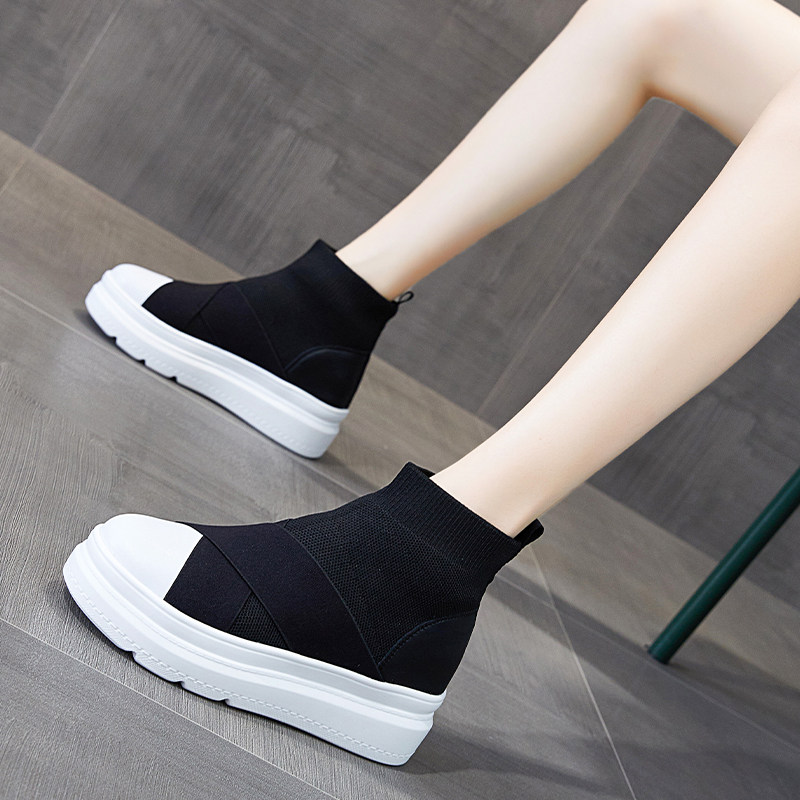 South Korea's new high-cylinder elastic socks shoes women's autumn and winter thick bottom heightening shoes 100 hitchhiking daddy shoes Sox boots
