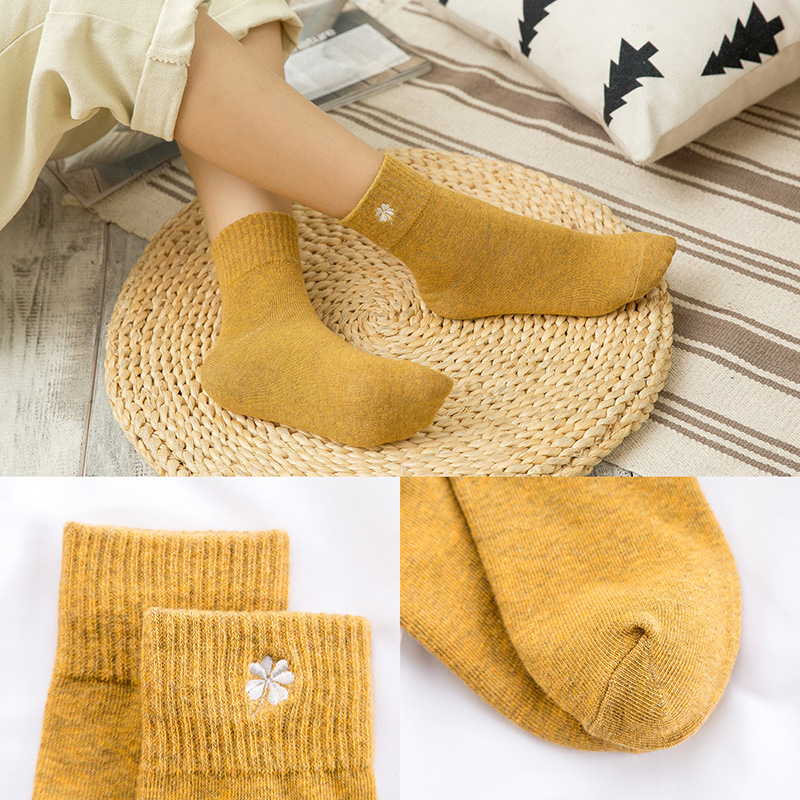 Four-leaf clover A love kettle back cat big face cat dog Seahorse leaf B pink fruit Four-leaf clover B leaf large fruit expression women's socks Sesame Street Daisy A