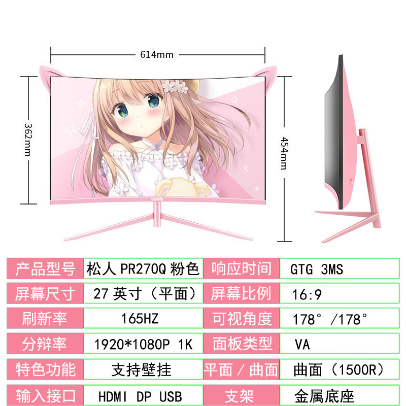 Pink monitor 27 inch 2K165hz curved desktop computer computer gaming home 1080p HD LCD
