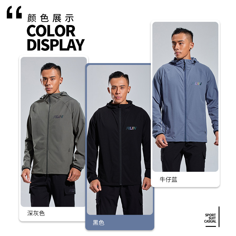 Sports jacket men's autumn and winter sweater jacket hooded running jacket woven windbreaker long-sleeved casual training top