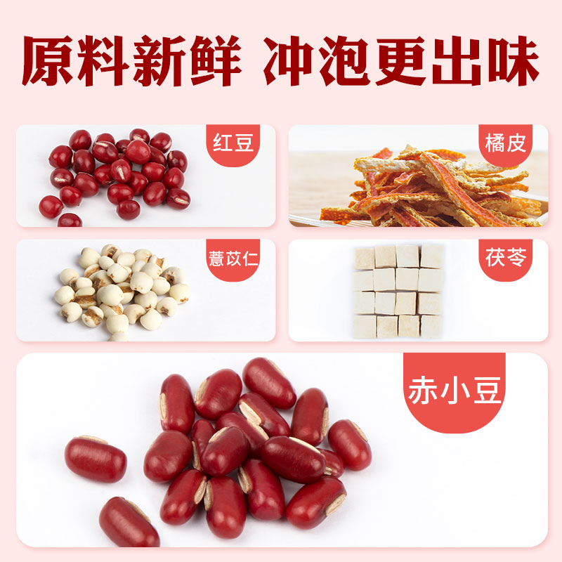 Red beans, coix seeds, gorgon, orange peel, barley, bitter buckwheat, wheat, gardenia, red beans, poria, licorice