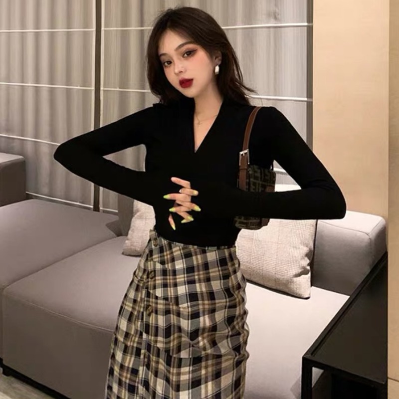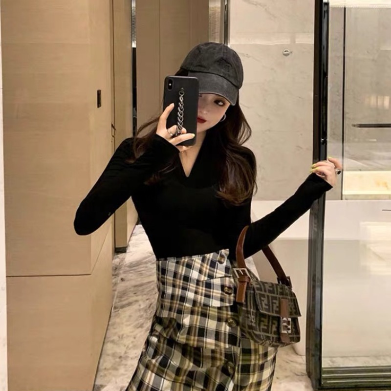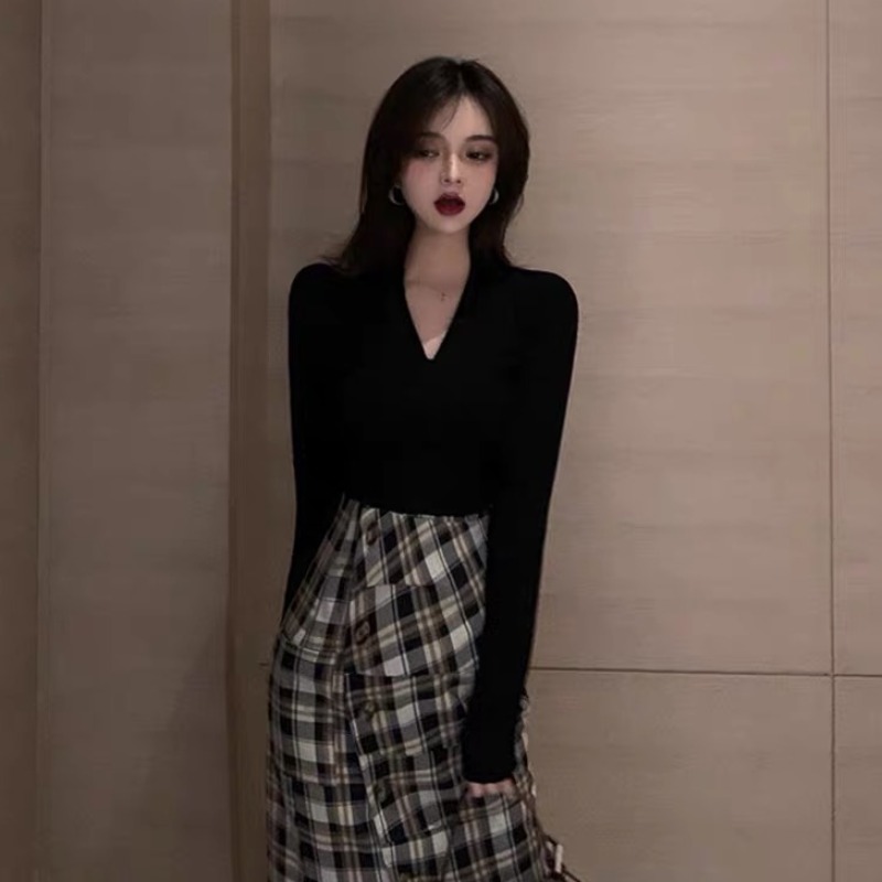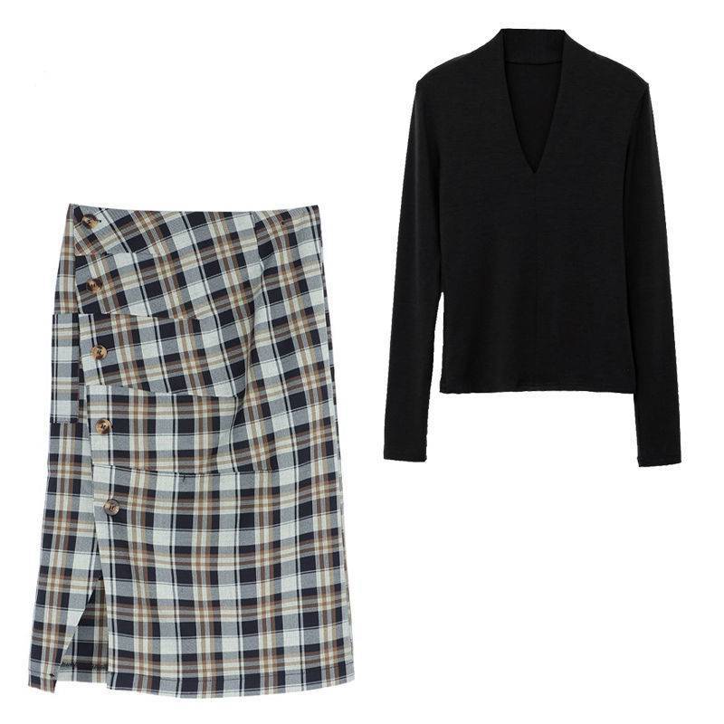 Black blouses and gill half-body dress