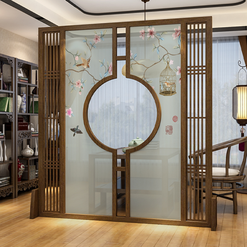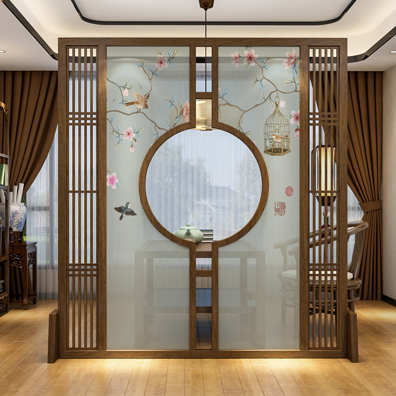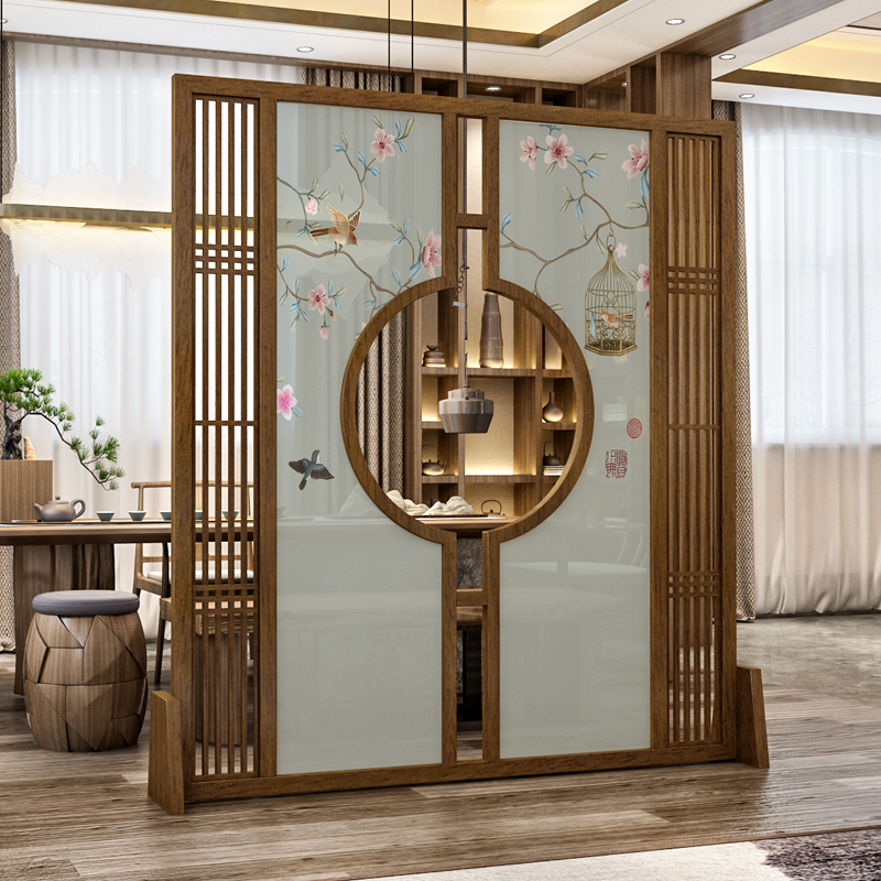 New Chinese style screen partition living room entrance hall simple modern tea room wall office solid wood Zen seat screen
