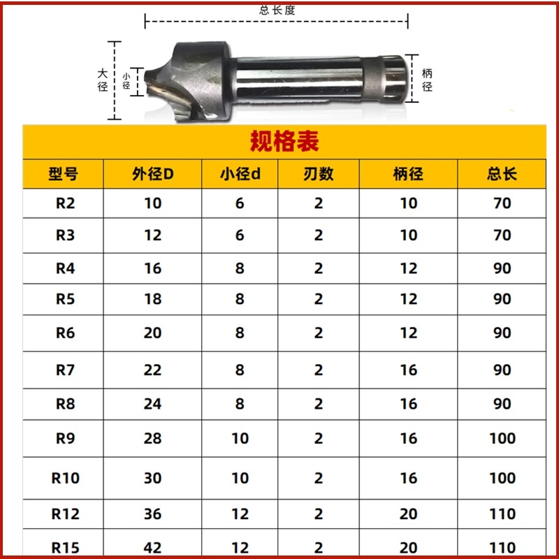 Tungsten Steel Inner R Chamfered Knife Fillet Knife Chamfered Milling Cutter Arc Knife Convex Chamfered Fillet Inlaid Alloy Inner R Milling Cutter