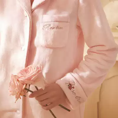 RoseTree flannel pajamas Women's winter thickened ins wind casual suit Flannel home clothes two-piece set