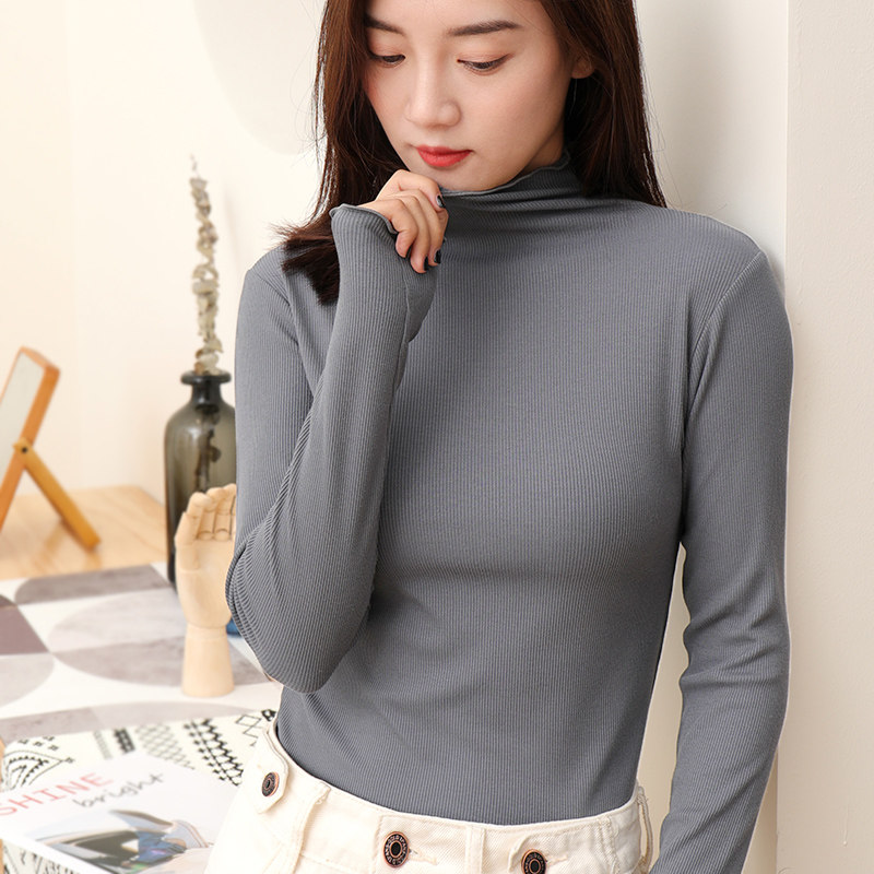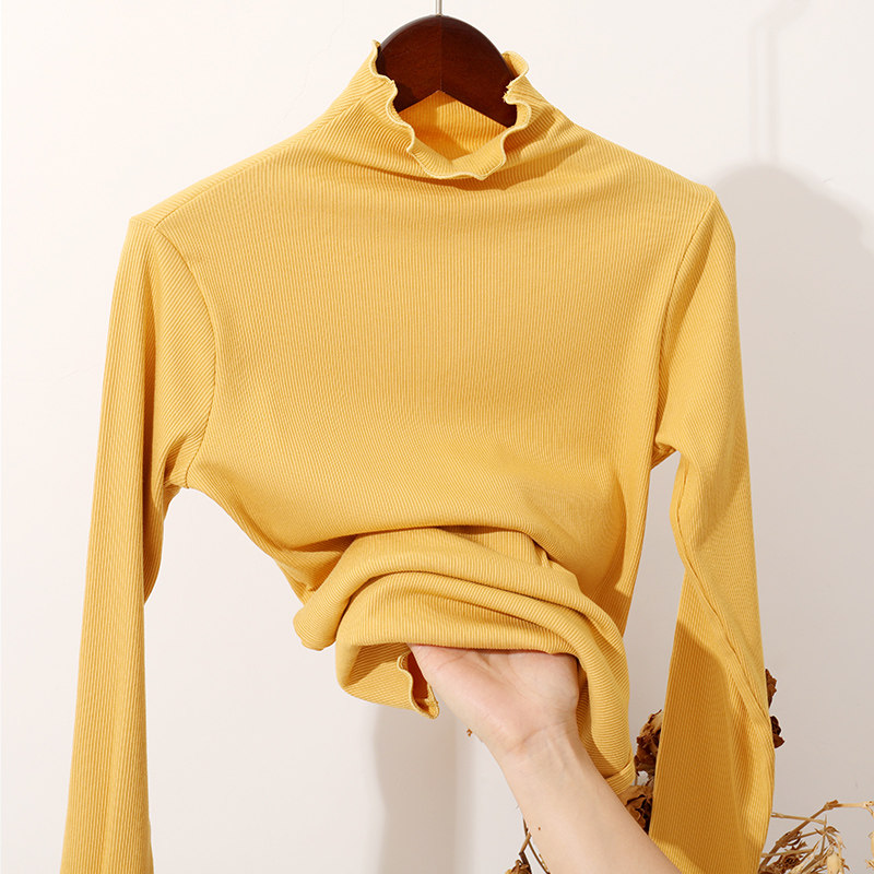 Undershirt woman autumn and winter semi-high collar with long sleeves T-shirt 2020 Spring autumn new agaric side 100 lap thread blouses