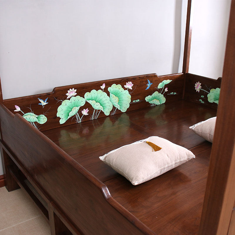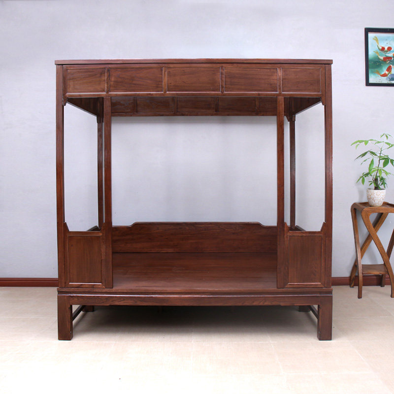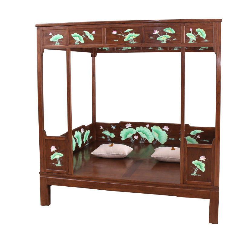 The old-fashioned step-up bed qiangong four-pillar depicts the lotus flower ancient bed shelf bed Ming and Qing dynasty classical antique Chinese elm eight steps