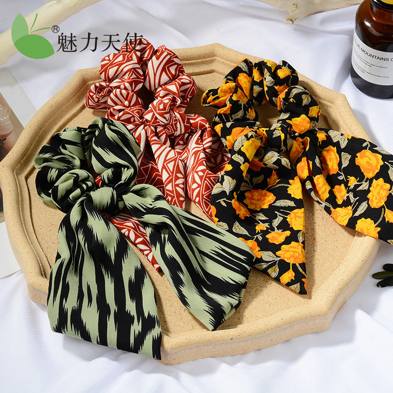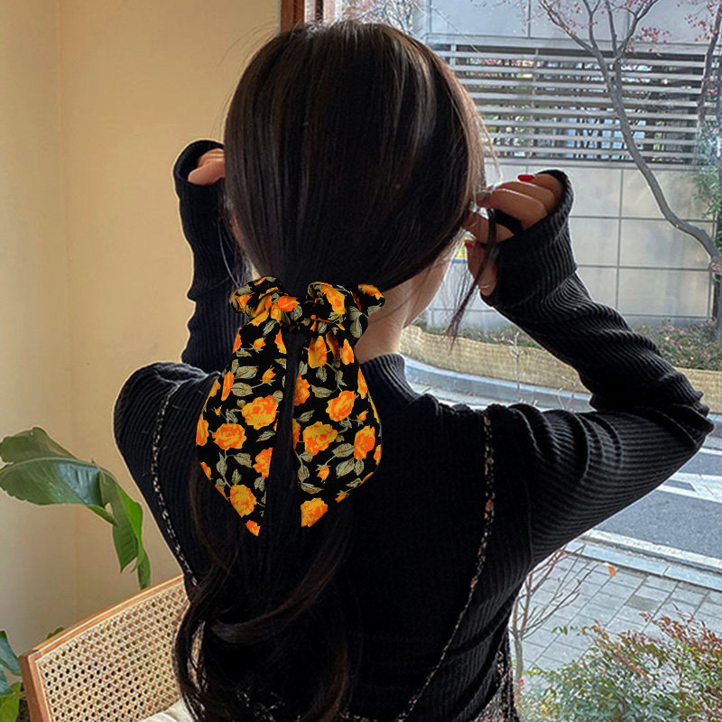 inza ponytail silk scarf hair with tied hair holiday chuckled hair braid headscarf woman hair ring hair accessories net red floating with headwear