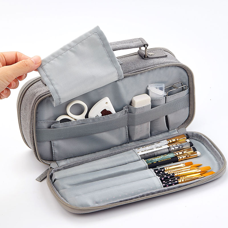 Pen Bag Large Capacity Multifunction Multilayer Canvas Learning Stationery Supplies Brief Women Ins Wind Junior High School High School Students Han Edition Day Department Middle School Students Net Red Lead Pencil Case Boys Elementary School Students