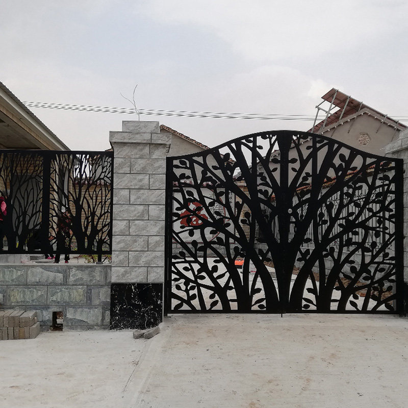Custom wrought iron Chinese courtyard gate outdoor garden yard villa European style gate double switch entry fence gate iron gate