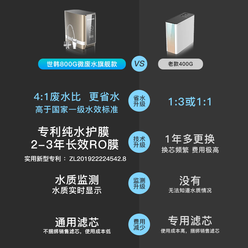 4: 1 micro-waste water pure water protection film ROK water purifier 800G no barrel large flux domestic reverse osmosis water purifier