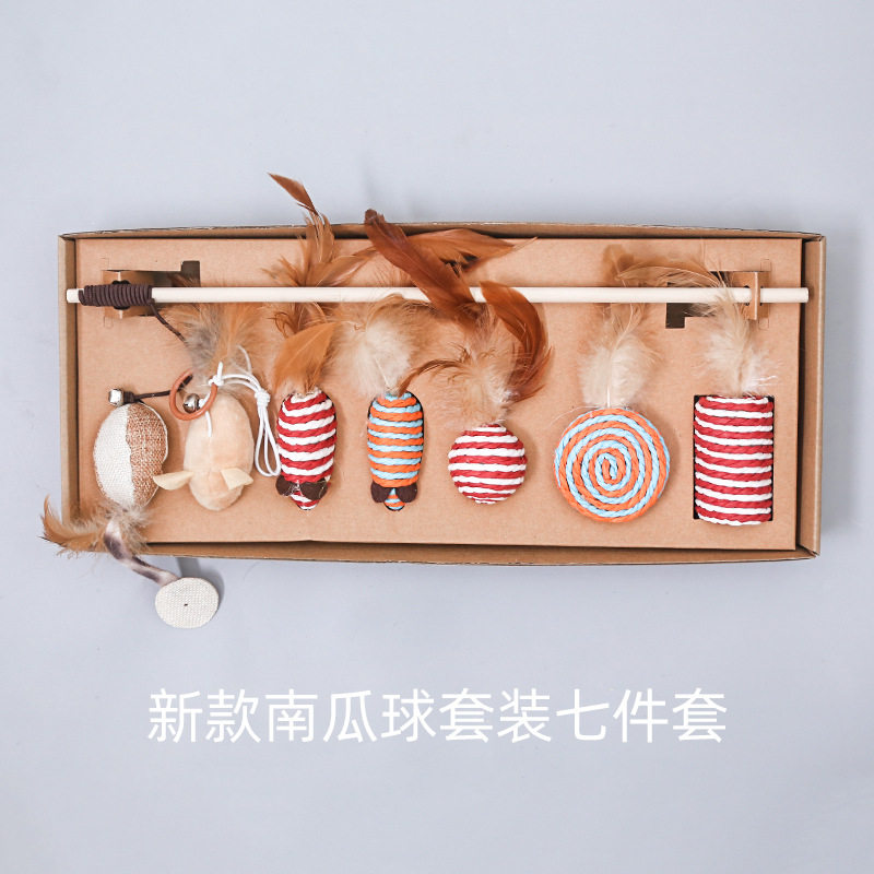 Kitty Toy Self-Hi Kit Combo Cat Grip Plate Seven Suits Long Pole Resistant bell Bell Feather Wooden Pole Teasing Cat Stick