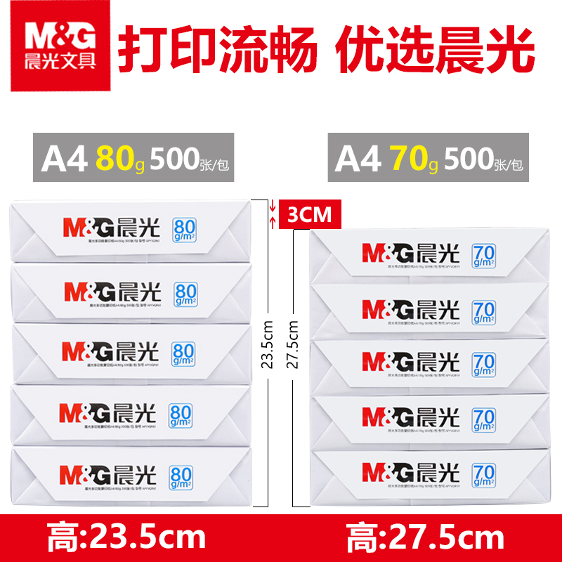 Chenguang a4 printing paper copy paper 70g white paper 80g single pack a pack of 500 sheets A4 paper box 8 packaging a box of whole wood pulp a3 printing paper double-sided thick draft paper office supplies