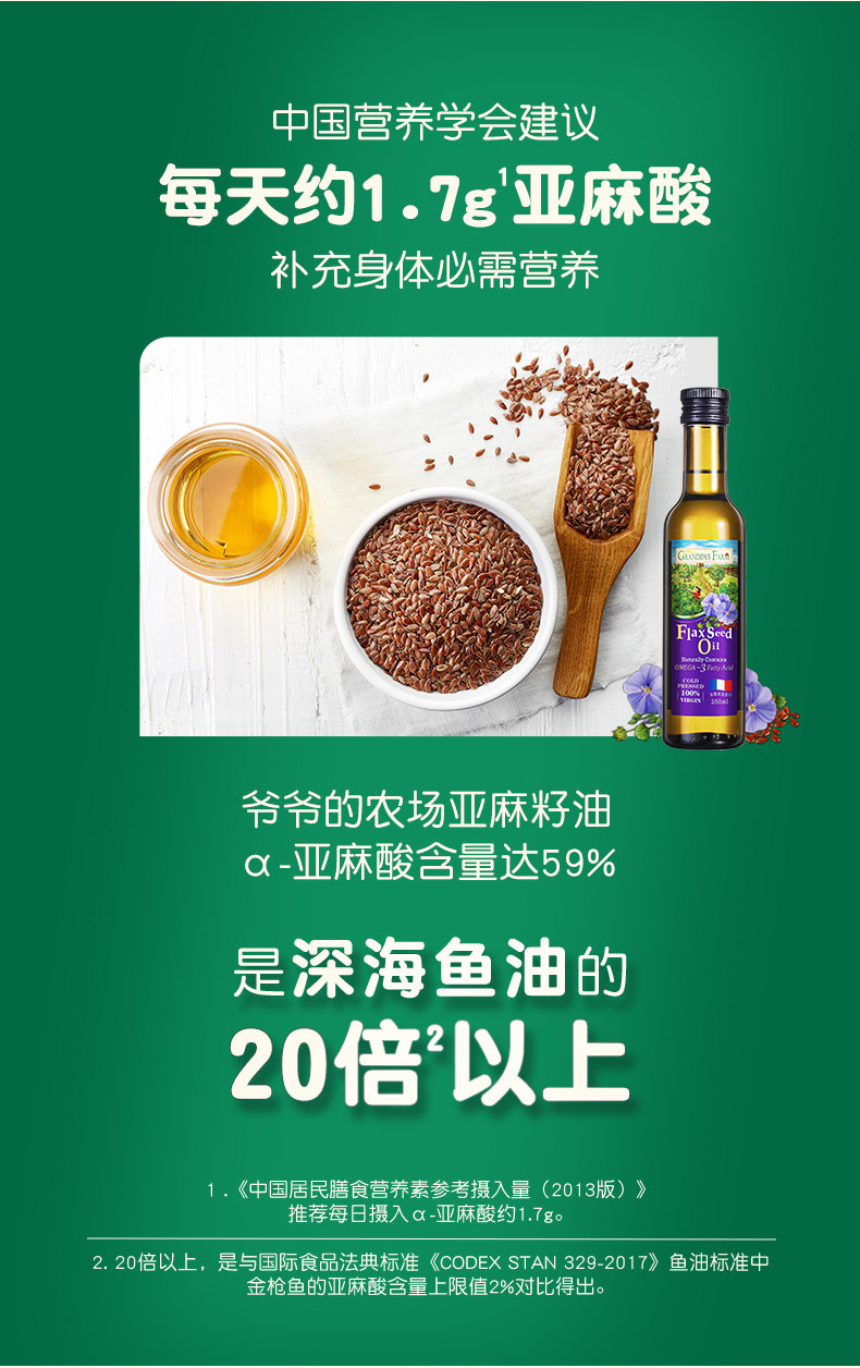 Grandpa's farm baby auxiliary cooking oil infant DHA linseed oil 250ml × 1 bottle hot fried cooking oil