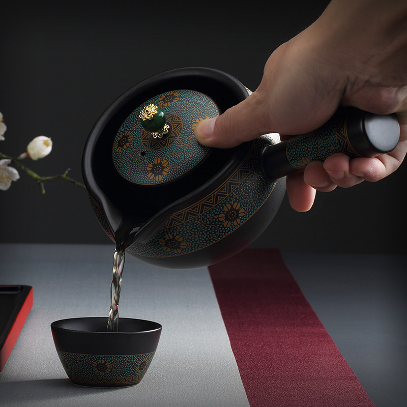 Japanese-style white tea teapot pottery pottery pottery pottery teapot side handle boiled Pu'er tangerine peel electric pottery stove tea set surround stove