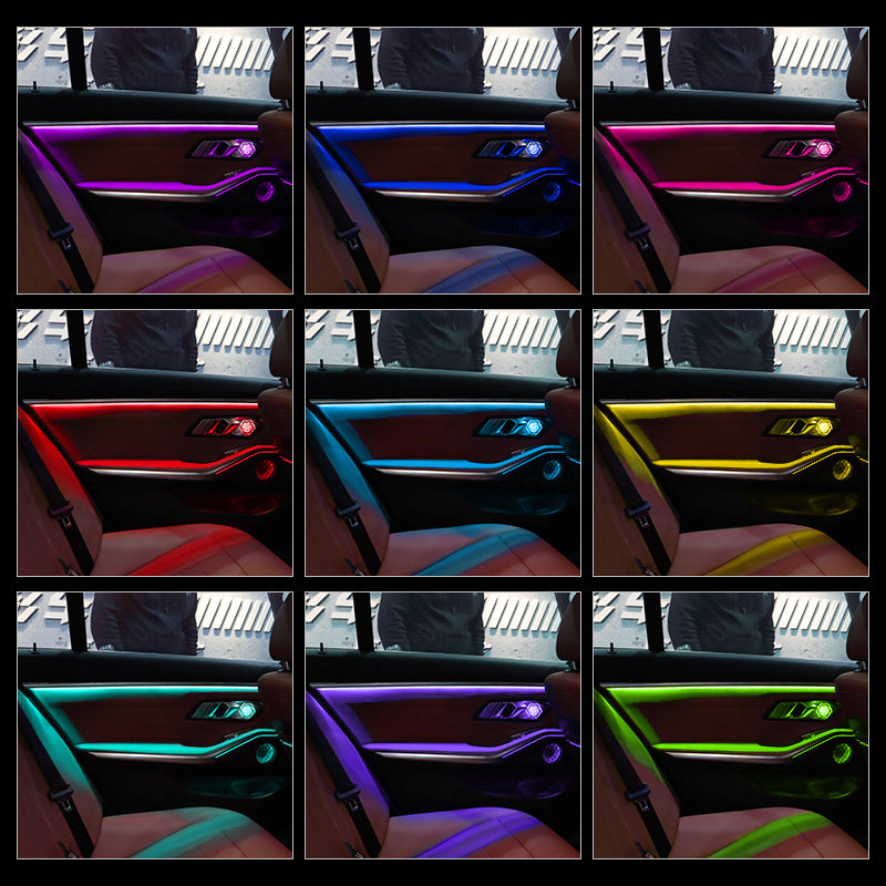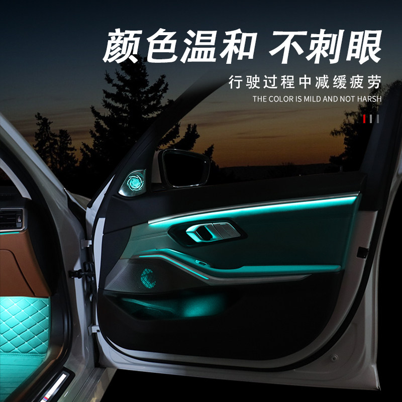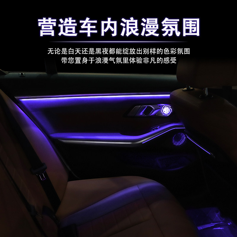 New 3 series screen control 11 color saddle - national package installation original car with atmosphere lamp plus 64 color suction module - not installed New 3 series four door decoration ambient lamp pack installation New 3 hair