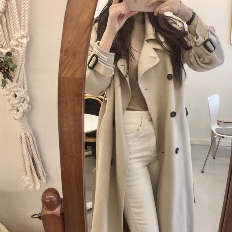 Korean Dongdaemun Hepburn style double-sided cashmere coat women's 2021 winter new lady British celebrity woolen coat