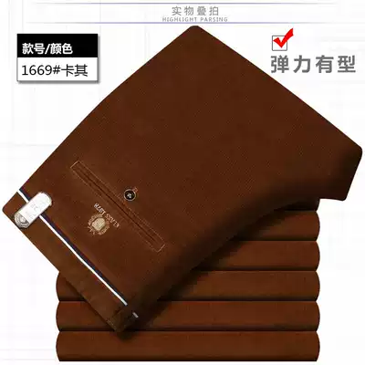 Fugui autumn corduroy pants men's elastic straight slim slim young people's casual pants thick pants