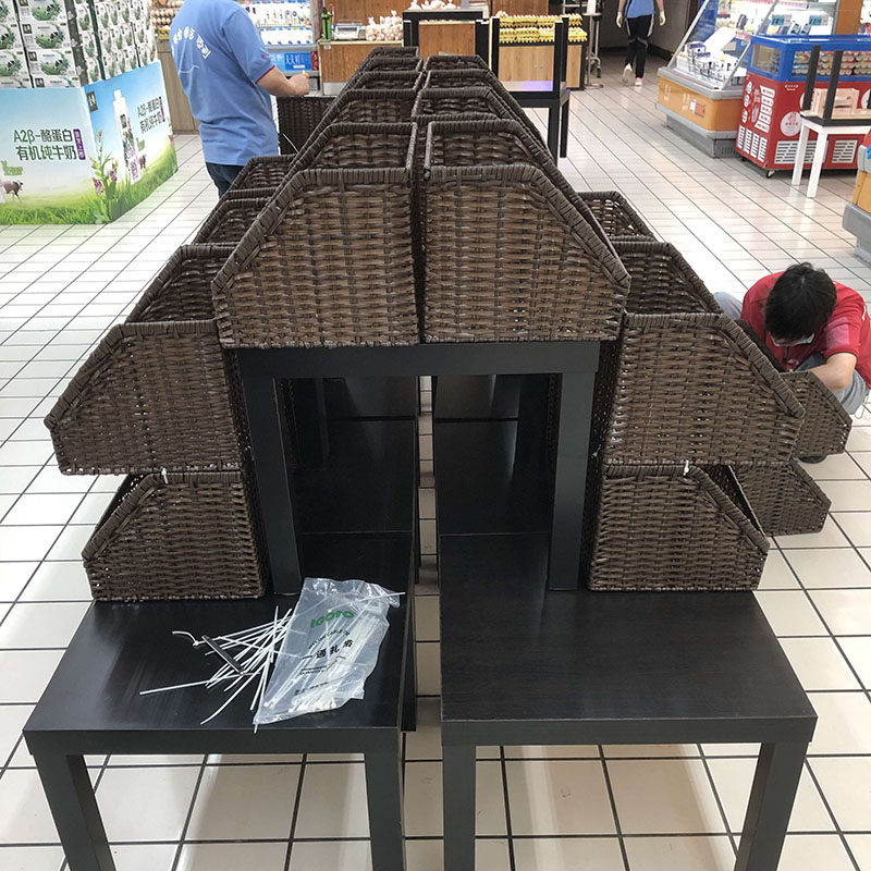 Oblique basket rattan woven fruit basket trapezoidal basket storage basket imitation rattan woven fruit and vegetable basket fruit display display basket shelf