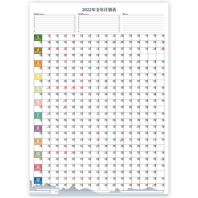 2022 365 days of daily fighting card month schedule Table Sunday Journey Wall Sticker Creativity Examination Time Management Learning Planning Work Elementary School Students Courses Good Habit to develop a winter vacation Self-disciplined annual calendar