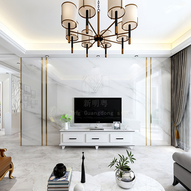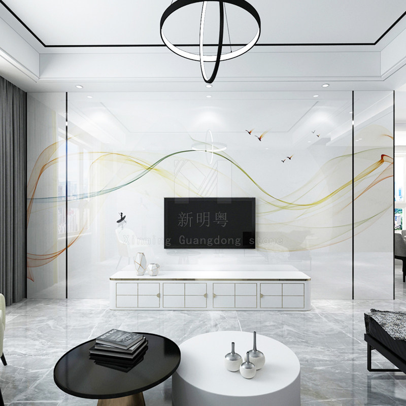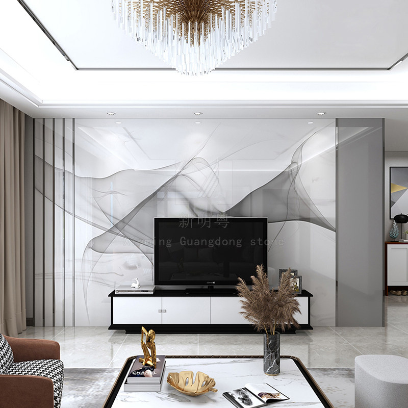Modern minimalist living room TV background wall tile ink infiltration stone UV large slab light luxury video wall decoration marble