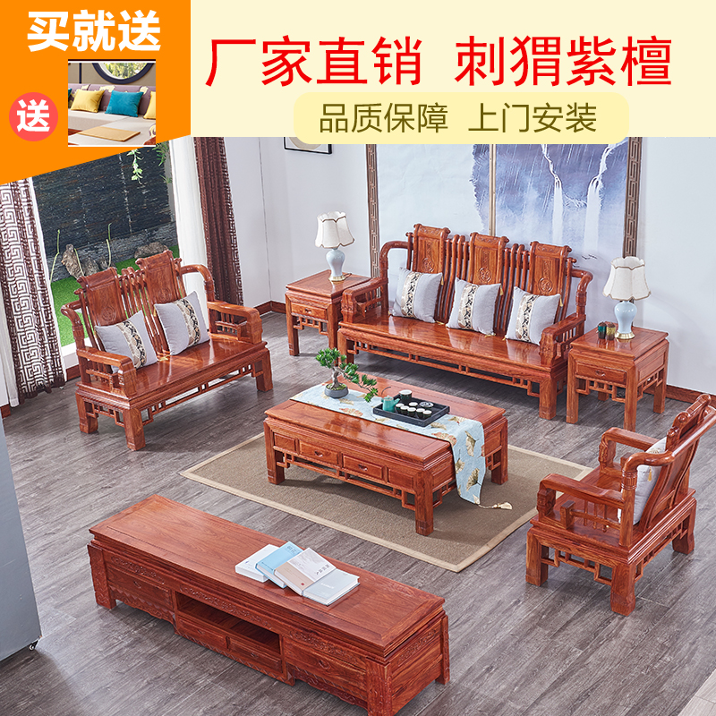 Red Wood Furniture Modern New Chinese Flower Pears Wood Living Room Sofa Solid Wood Hedgehog Purple Sandalwood Minima Classy Whole Sofa