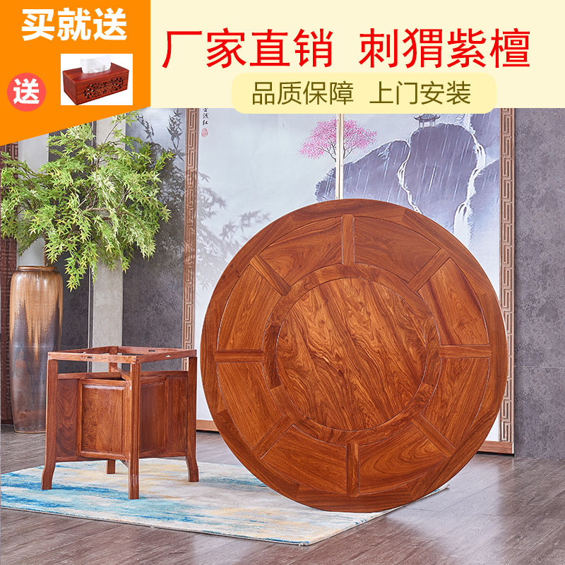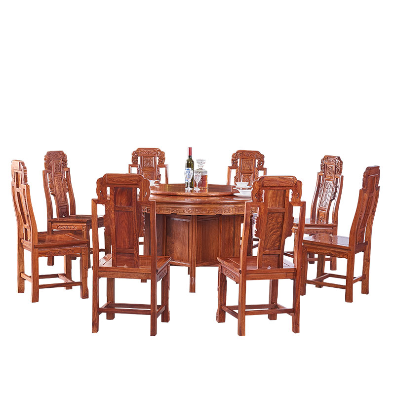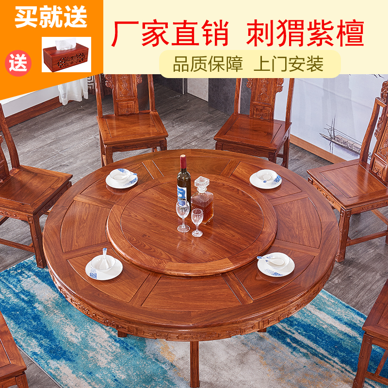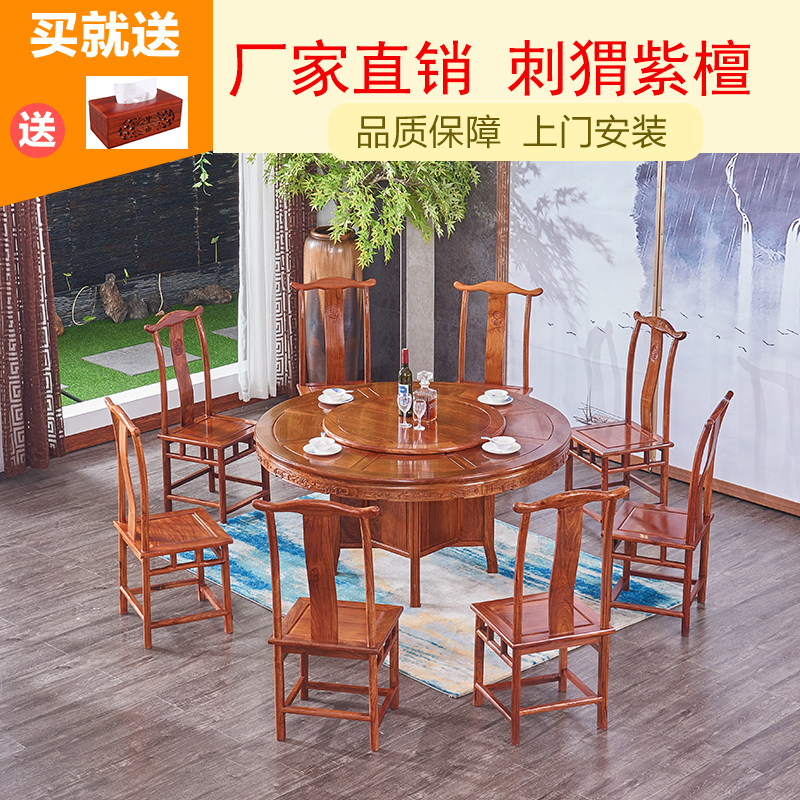 Mahogany dining table and chair combination Chinese rosewood round dining table with turntable solid wood hedgehog red sandalwood home plain classic - Taobao