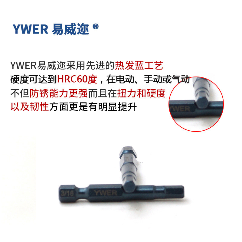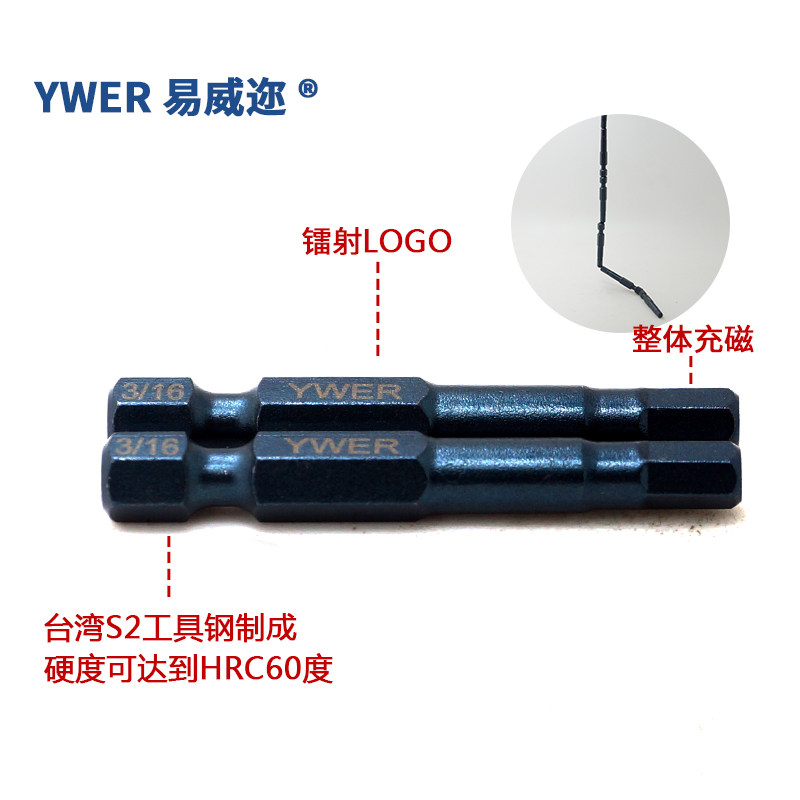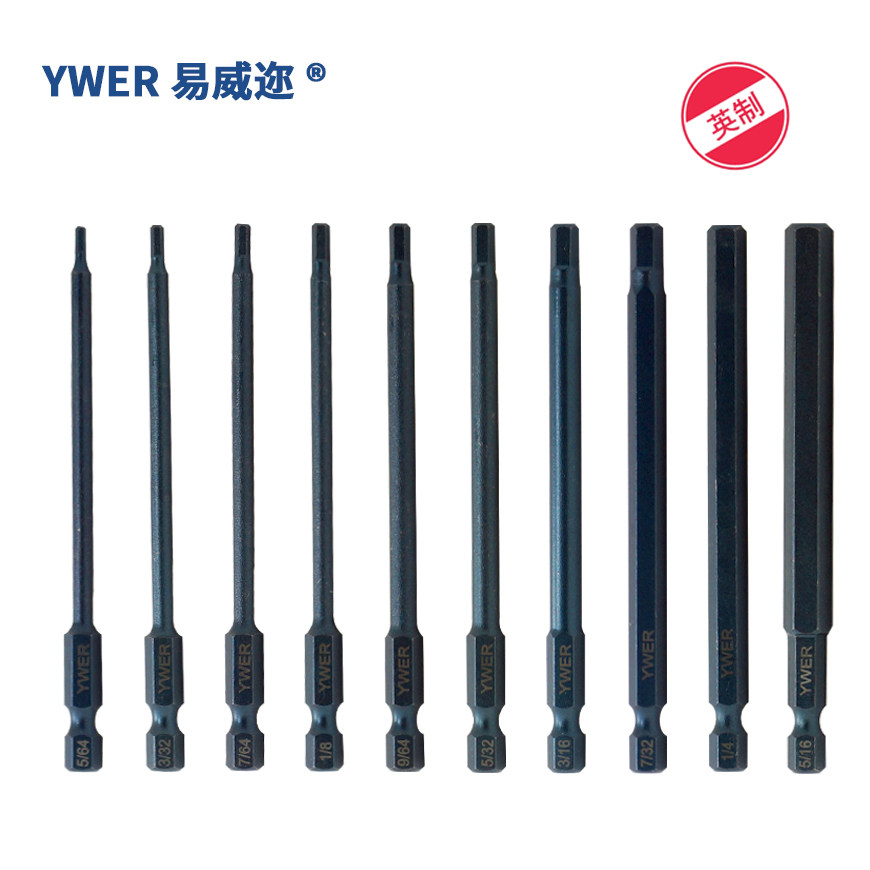 YWER Inch hexagon pneumatic screwdriver head tip Inch Hexagon screwdriver head S2 electric screwdriver head 1 8 9 64 3 16