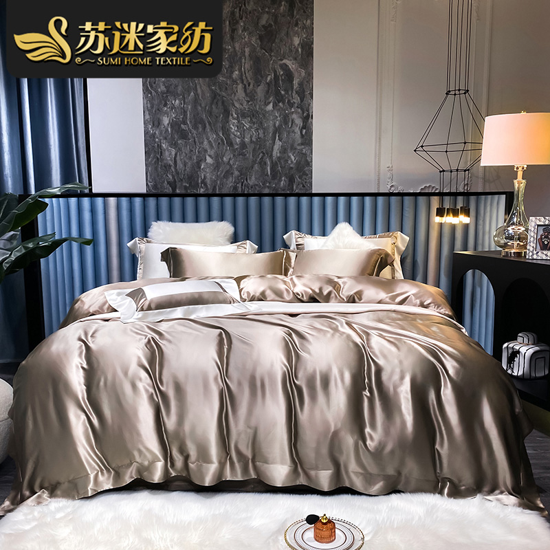 Heavy double-sided silk bedding four-piece set 100% mulberry silk solid color custom bed sheet bed Kasa silk quilt cover