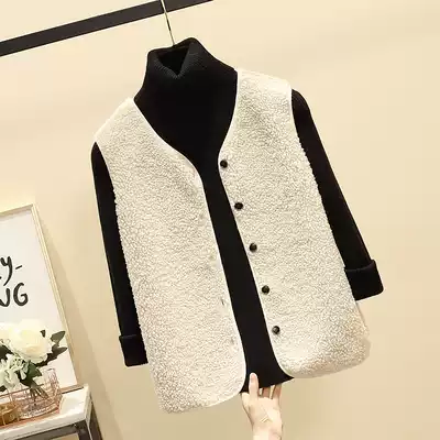 Lamb hair vest women's autumn and winter short Korean version of the fur one-piece vest jacket 2021 new waistcoat horse clip