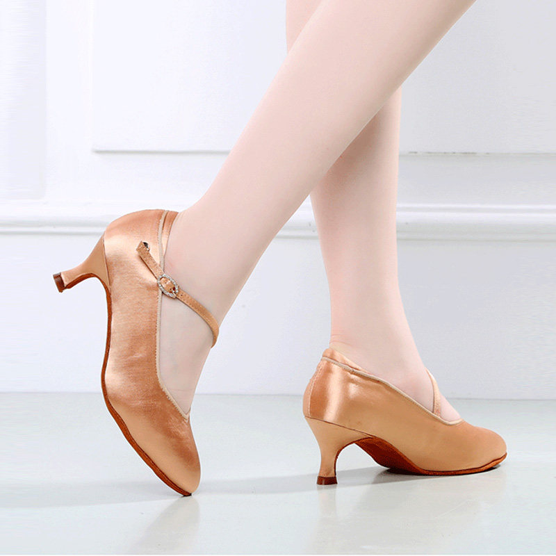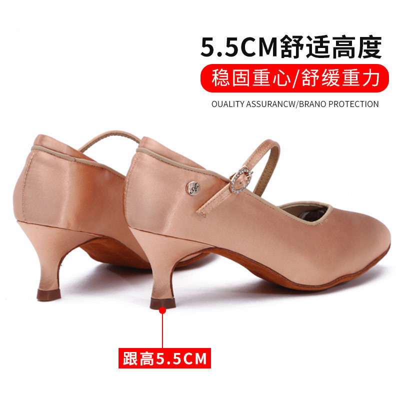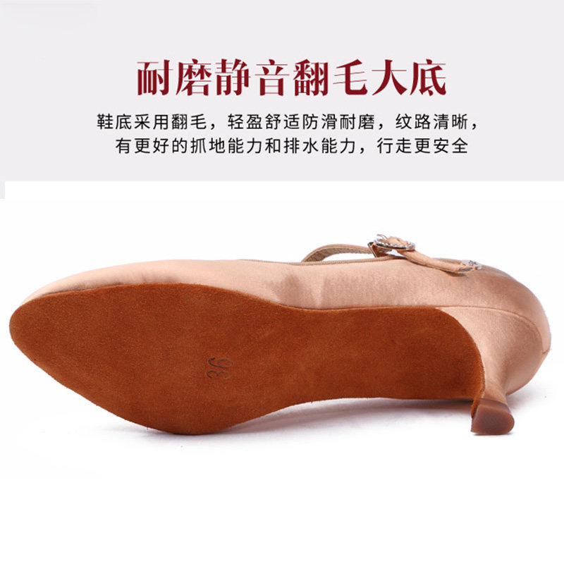Dan Baoluo soft bottom middle heel social square dance dancing Latin women's shoes satin modern dance shoes women's adult dance shoes