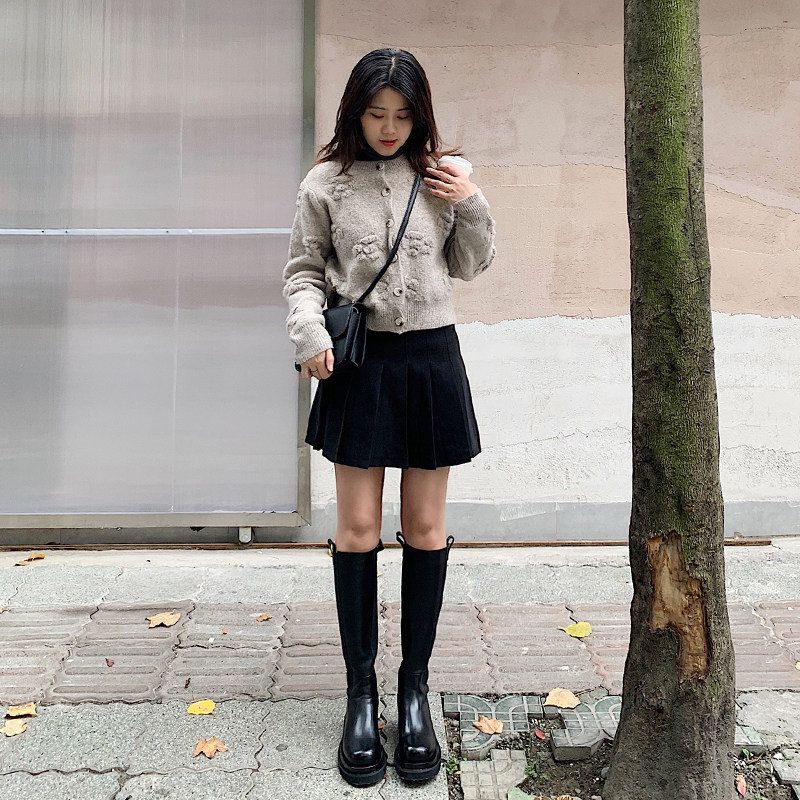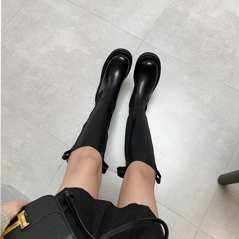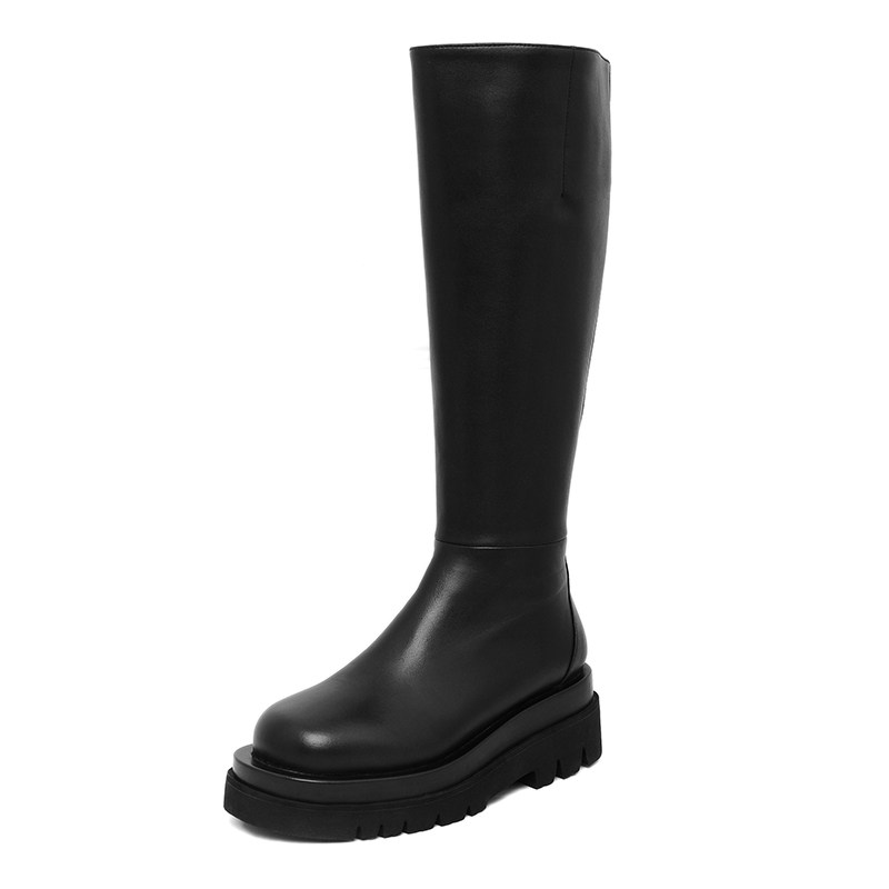 Not 2 Orange But Knee Genuine Leather Long Cylinder Smoke Pipe Boots Thick Bottom Riding Boots rear Heightening Locomotive High Cylinder Boots Woman